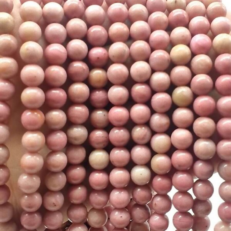 Apaļas dabīgā rodonīta pērles 6mm diametrā.