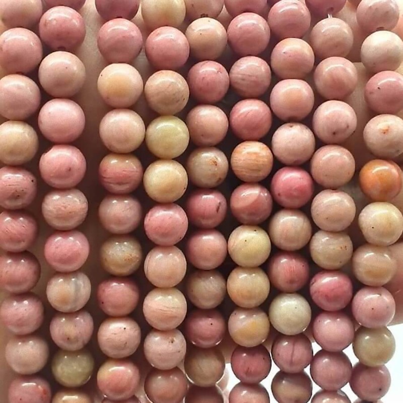 Apaļas dabīgā rodonīta pērles 8mm diametrā.