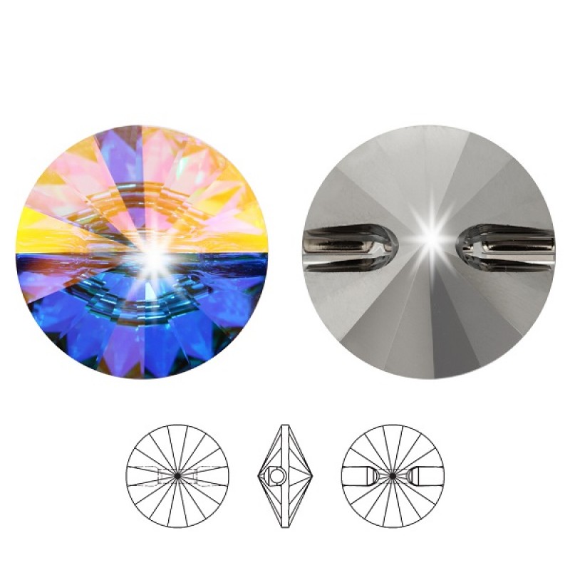 SWAROVSKI rivoli kristāla AB pogas 10mm diametrā ar savu mirdzumu padarīs greznu jebkuru apģērbu vai aksesuārus! Folija aizmugure.