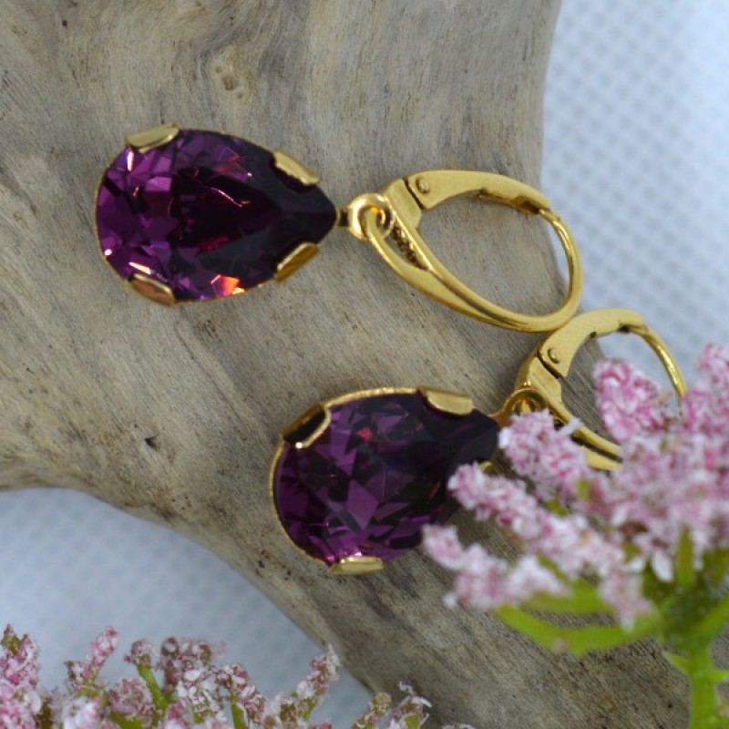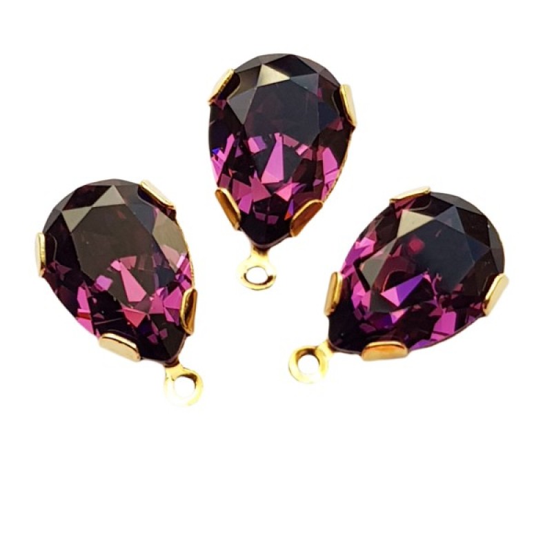 4320 14x10mm Amethyst F Pear shape Fancy stone ietvarā ar cilpu, zelta p.(x1)