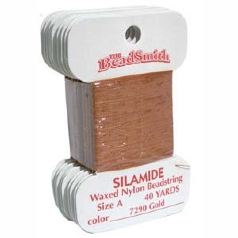A izmēra silamīda diegs - ar vasku apstrādāts neilona diegs pērļošanai. Diegu izmanto īpaši smalku sēkliņpērlīšu projektu veidošanai.
