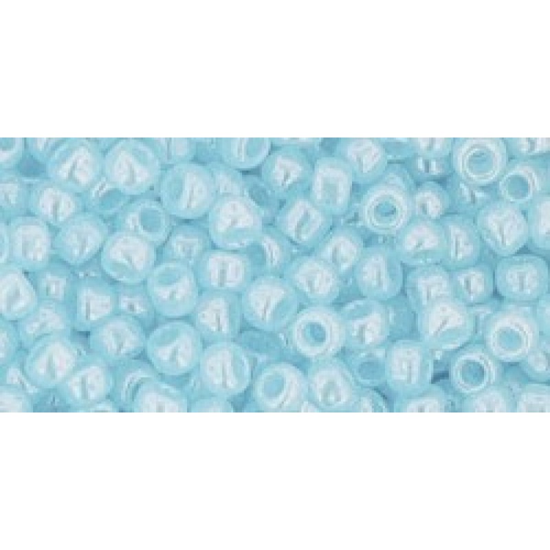 Necaurspīdīga gaiši zila pērlīte ar perlamutra spīdumu.