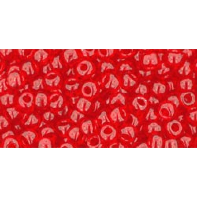 Caurspīdīga, gaiši rubīnsarkana stikla pērlīte, apmēram 3 mm diametrā.