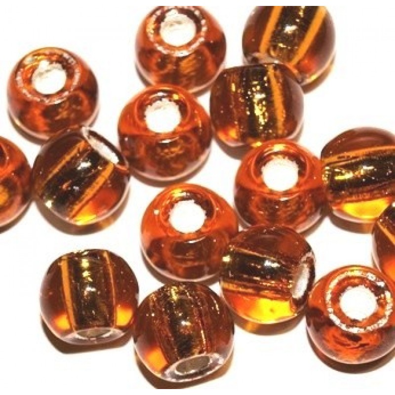 Stikla pērle ar follija vidu, diametrs 12mm. Ekstra liels caurums. Piemērotas gan 15mm, gan 85mm adītajām stieples lentām. Cena par gab.