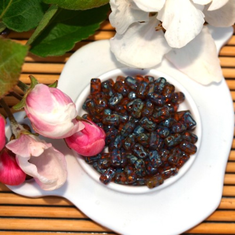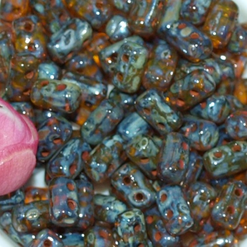 Rulla pērles, krāsa Amber Picasso. Cena par 10g iepakojumu, aptuveni 93-95 pērles.