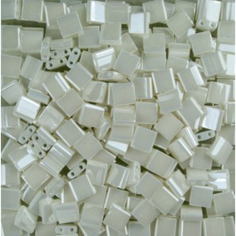 Divu caurumu Tila pērles. To izmērs ir 5x5x1.9 mm un katrai pērlei ir divi paralēli 0.8mm lieli caurumi. Vienā gramā ir aptuveni 12 Tila pērles. Tieši tā pat kā citas pērles no Miyuki, arī šīs ir vienādas pēc izmēra un formas. Cena par 5 g iepakojumu (+/- 60 pērles, atkarīgs no pārklājuma).