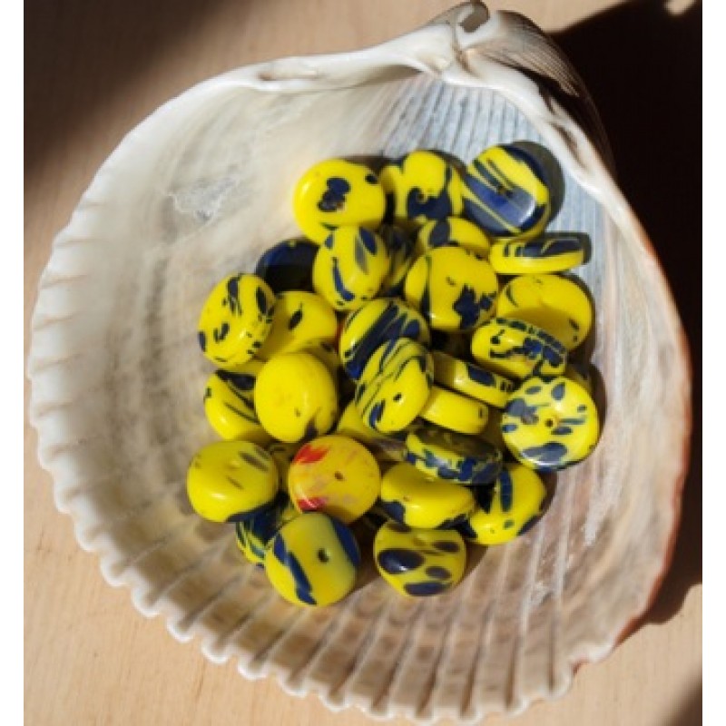 Koša, maza izmēra (4x11 mm) pērle. Tās pamatkrāsa ir dzeltena, lai gan ir arī tādas pērles, kurās vairāk dominē zilais tonis.  Cena par gab.