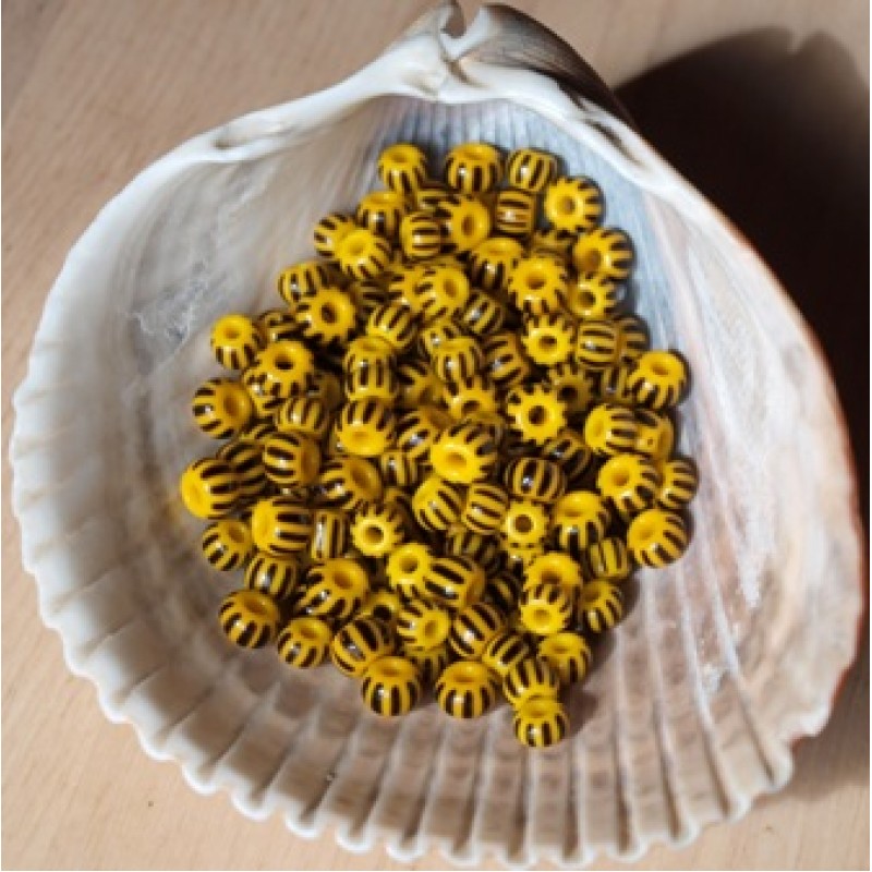 Skaista, gluda pārstrādātā stikla pērle. Pēc krāsas atgādina biti. Aptuvenais izmērs 5x4mm. Cena par 10gab.