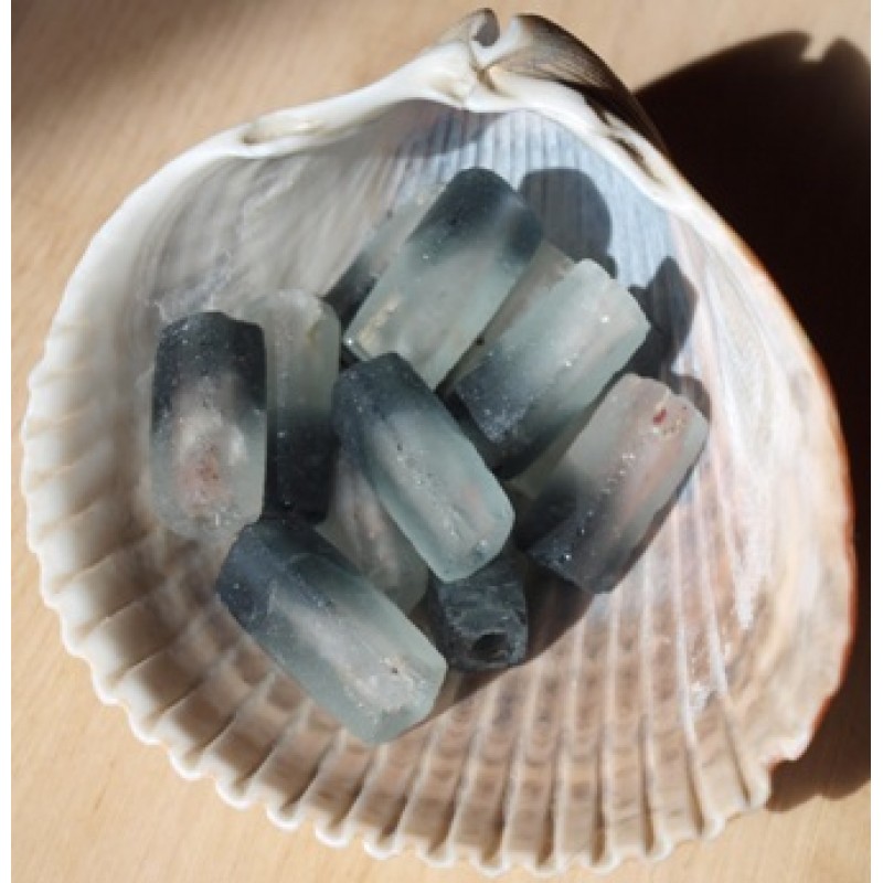 Četrstūrveida pērles no pārstrādātā stikla. Viens pērles gals matētā baltā krāsā, otrs matēti melns. Izmērs aptuveni 25x7mm. Cena par gab.