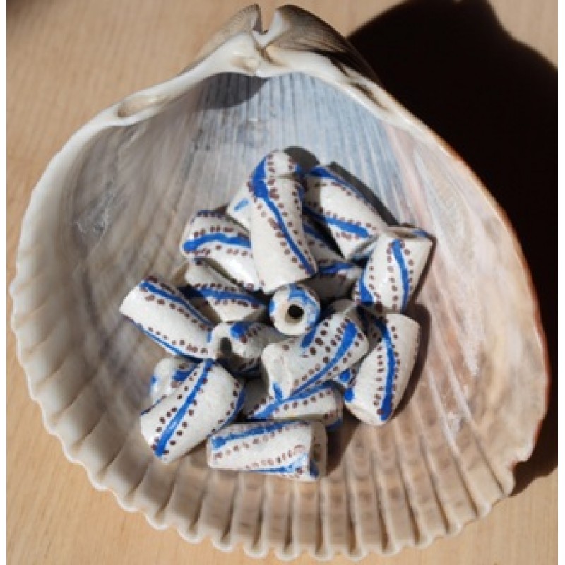 Pārstrādātā stikla pērle baltā krāsā ar rakstu, izmērs - 18x9 mm. Cena par gab.