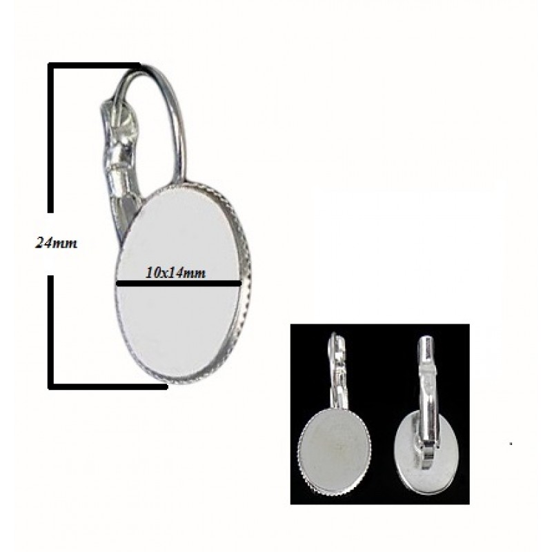 24mm misiņa auskaru āķi ar pamatni 10x14mm kabašoniem. Sudraba pārklājums. Ar aizmugures drošības sviru.