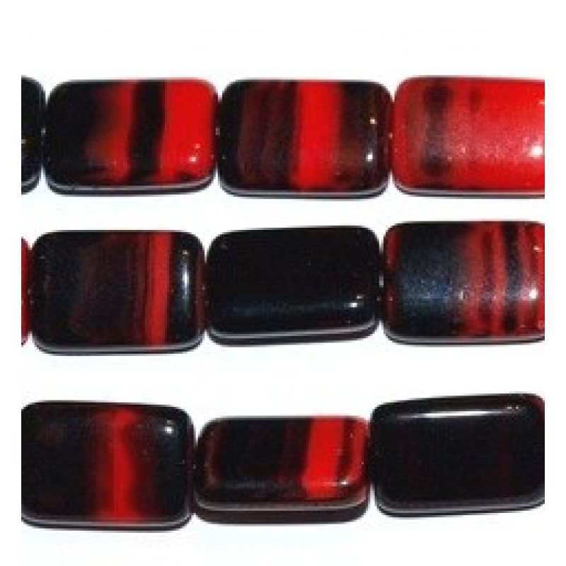 Necaurspīdīga, 15x10mm stikla pērle, raiba - melns ar sarkanu/sarkans ar melnu. Atsevišķas pērles izskatās gandrīz melnas. Cena par gab.
