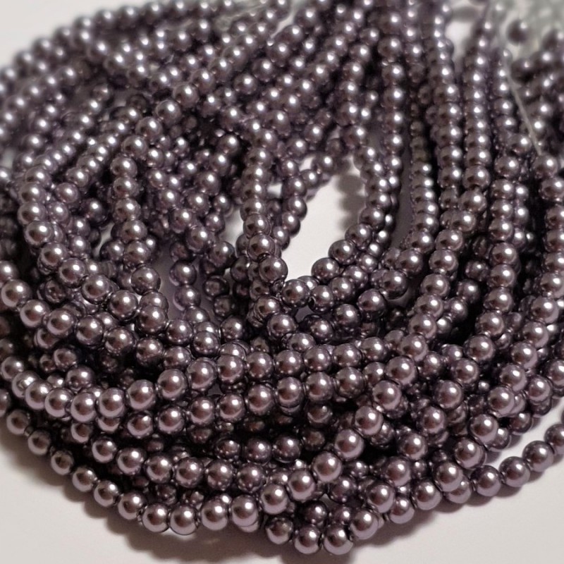 SWAROVSKI pērles pelēcīgi violetā krāsā ar dabiskā perlamutra spīdumu.