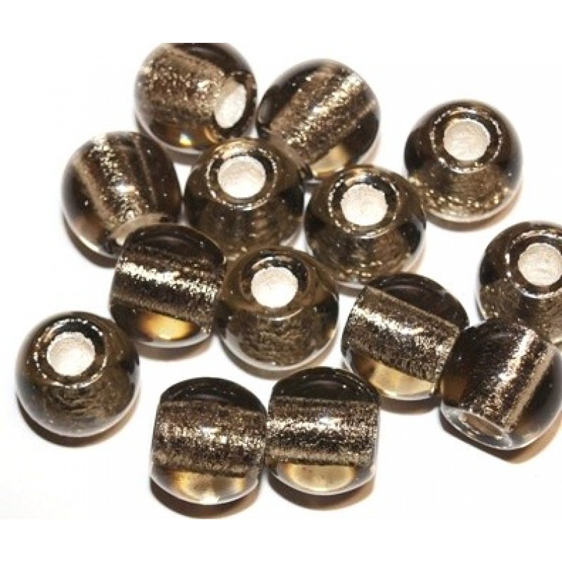Stikla pērle ar follija vidu, diametrs 12mm. Ekstra liels caurums. Piemērotas gan 15mm, gan 85mm adītajām stieples lentām. Cena par gab.