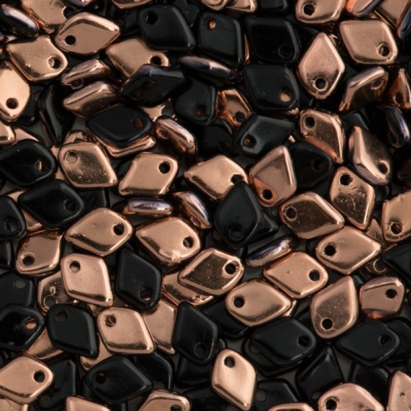 Melnas Dragon Scale pērlītes ar rozā zelta krāsas pārklājumu no vienas puses.
