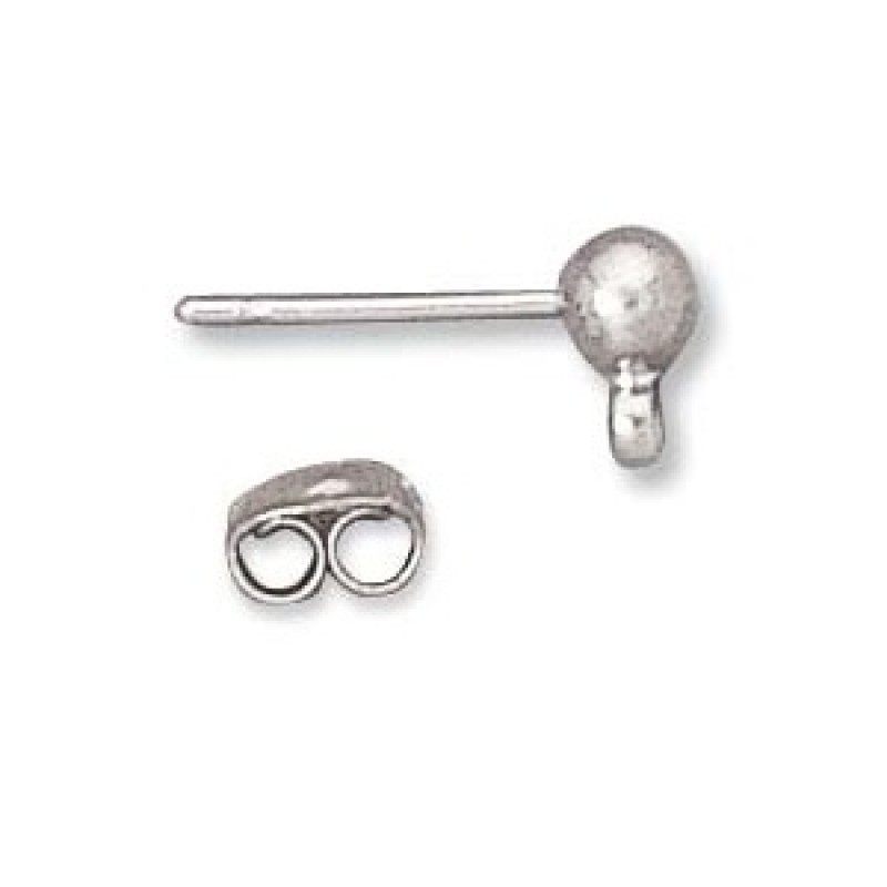 Jauka auskaru sagatave ar 4mm bumbiņu un 3mm neatveramu cilpu, ķirurģiskais tērauds niķeļa krāsā.