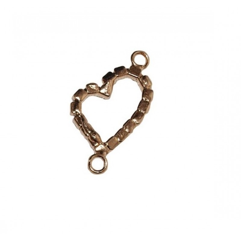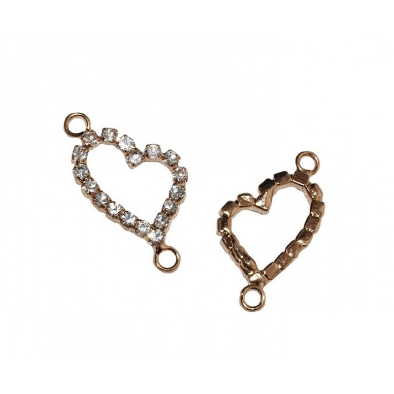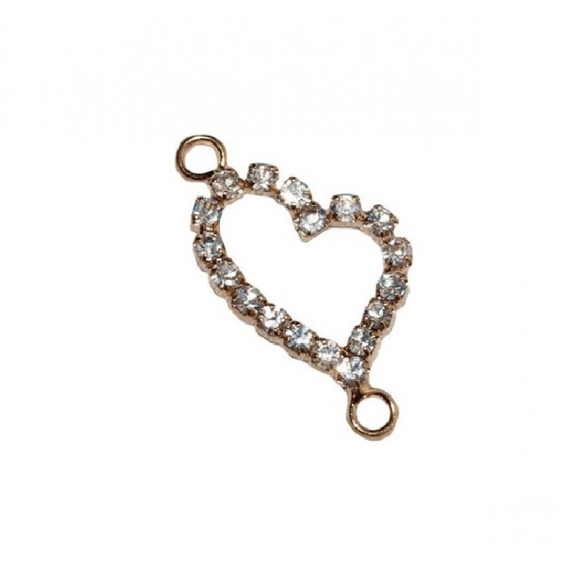 Sirdsveida savienojums ar stikla kristāliņiem, izmērs 13x24mm, cilpu diametrs aptuveni 2mm. Cilpas nav atveramas. Materiāls - misiņs ar zelta pārklājumu. Nesatur niķeli, svinu un kadmiju.