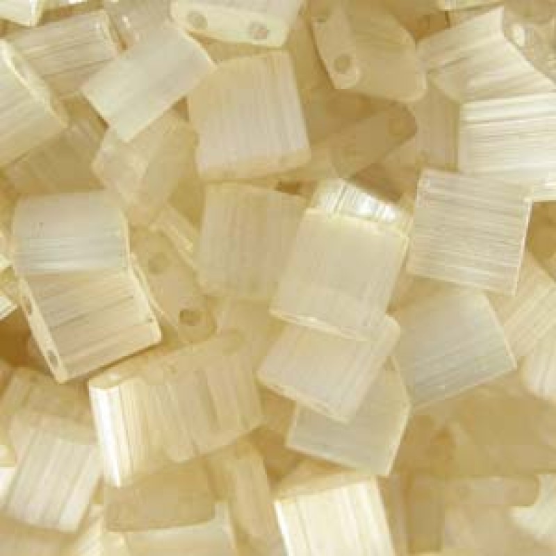 Caurspīdīgas, matētas ziloņkaula krāsas pērles. To izmērs ir 5x5x1.9 mm un katrai pērlei ir divi paralēli 0.8mm caurumi. Vienā gramā ir 10-12 Tila pērles (atkarīgs no pārklājuma). Cena par 5 g iepakojumu.