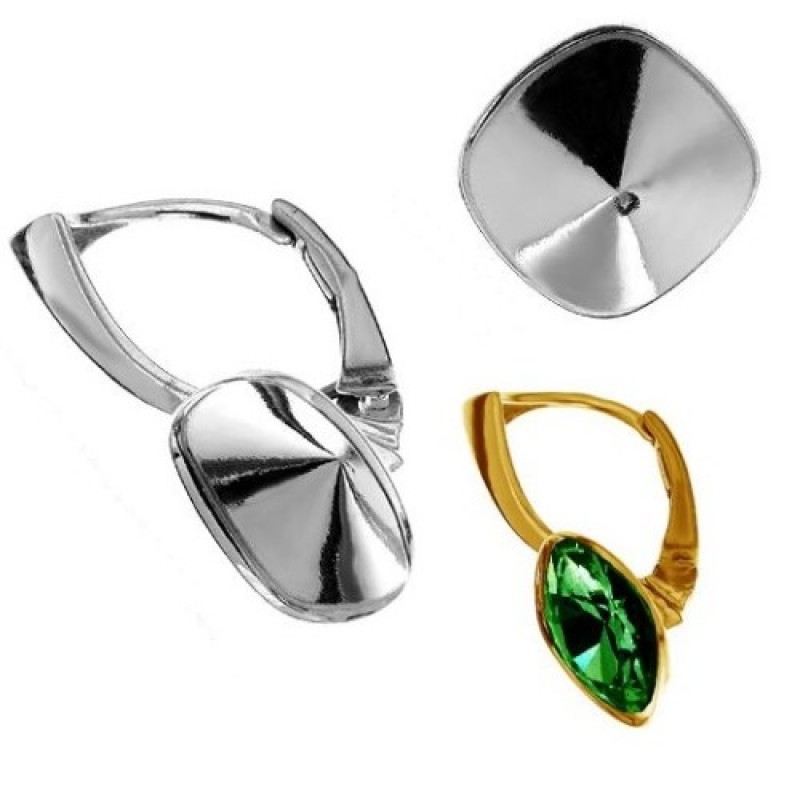 Augstas kvalitātes leverback auskaru sagatave ar pamatni 10x10mm SWAROVSKI 4470 kristāliem.