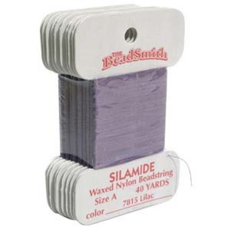 A izmēra silamīda diegs - ar vasku apstrādāts neilona diegs pērļošanai. Diegu izmanto īpaši smalku sēkliņpērlīšu projektu veidošanai.