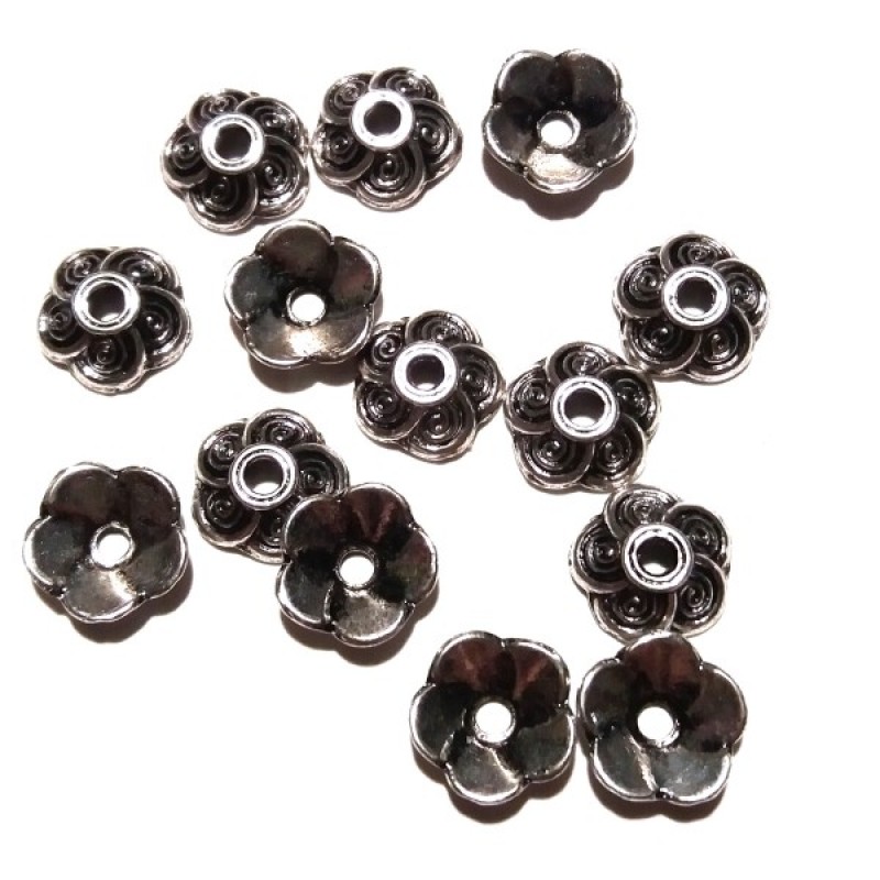 Antīka sudraba krāsas metāla pērļu cepure 9mm diametrā, augstums 3mm, cauruma diametrs 1.5mm. Cana par gab.