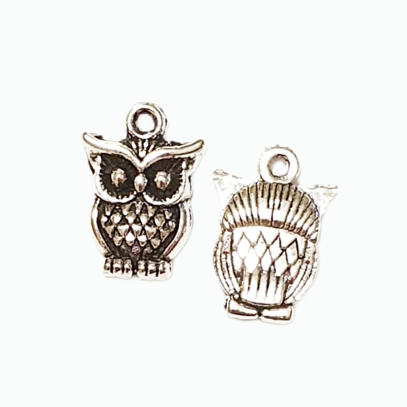 Divpusējs metāla piekariņš gudrā pūce antīka sudraba krāsā.