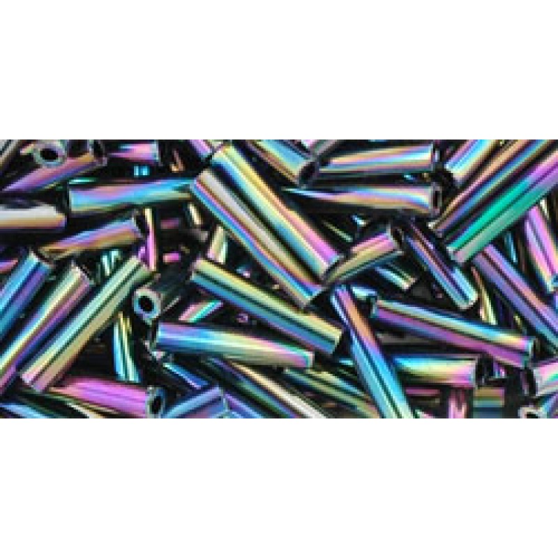 9x2 mm garas stikla pērlītes, cauruma diametrs aptuveni 0.5mm. Metāliski brūngani violetas krāsas garās stikla pērlītes, kas gaismā maina krāsu (kā attēlā redzams).