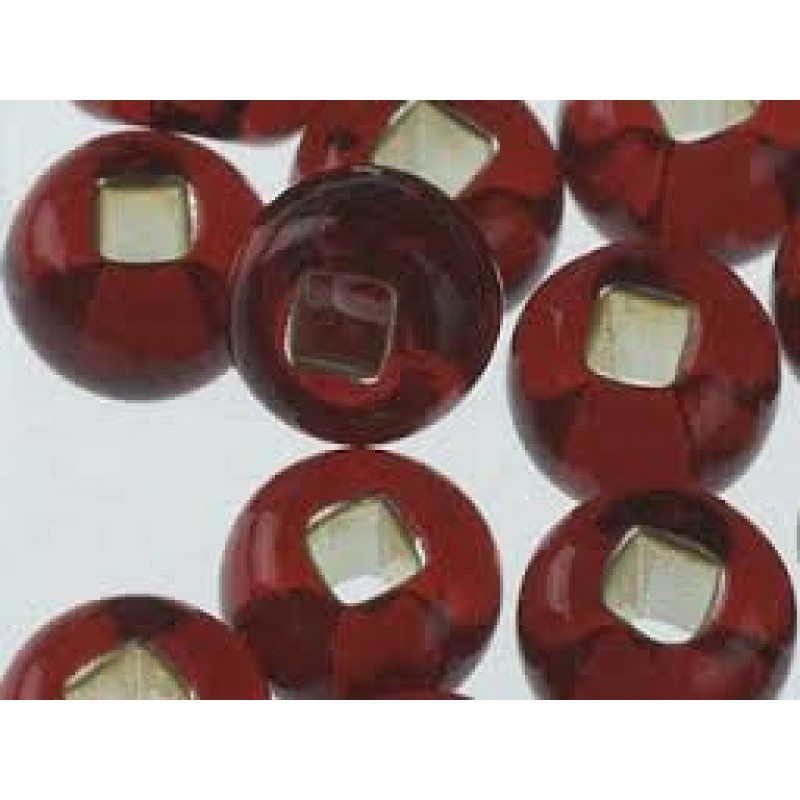 Caurspīdīgas rubīnsarkanas pērlītes ar sudraba joslu, caurums - kvadrāts.
