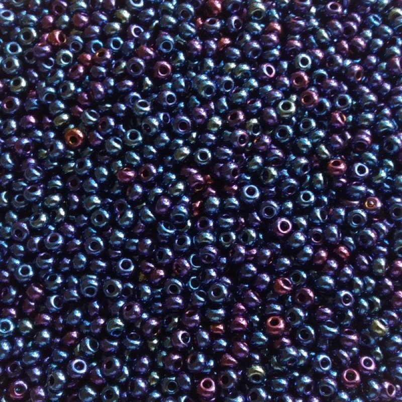 Necaurspīdīgas metāliski nakts zilas pērlītes ar varavīksnes efektu.