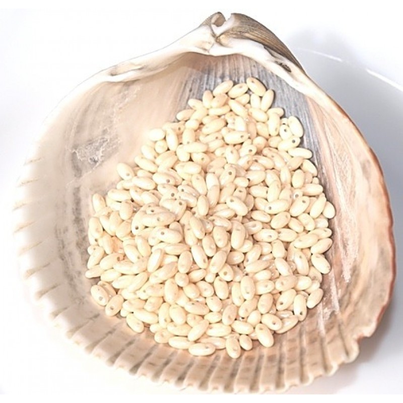 Iepakojumā necaurspīdīgas, šampanieša krāsas pērles ar spīdumu. Cena par 5g - aptuveni 73 pērles.