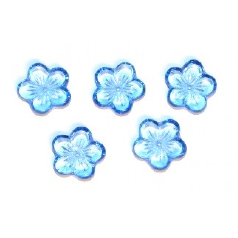 Presētā stikla pērle izteikti safīrzilā krāsā, caurspīdīga. Izmērs - 16mm diametrā, 4mm bieza. Cauruma diametrs ~1mm.