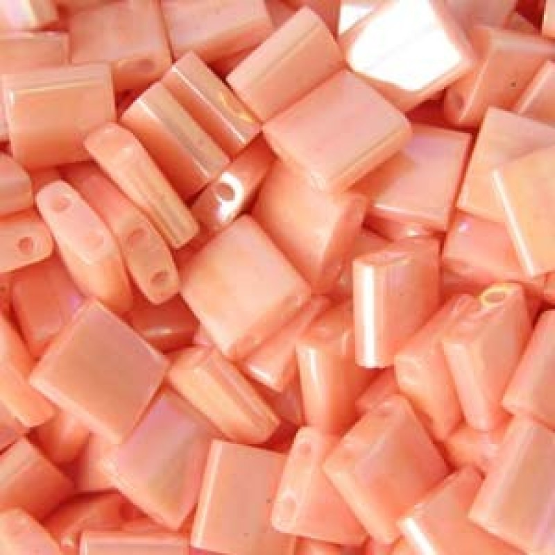 Necaurspīdīgas, laša krāsas Tila pērles ar varavīksnes spīdumu. To izmērs ir 5x5x1.9 mm un katrai pērlei ir divi paralēli 0.8mm caurumi. Vienā gramā ir 10-12 Tila pērles (atkarīgs no pārklājuma). Cena par 5 g iepakojumu.