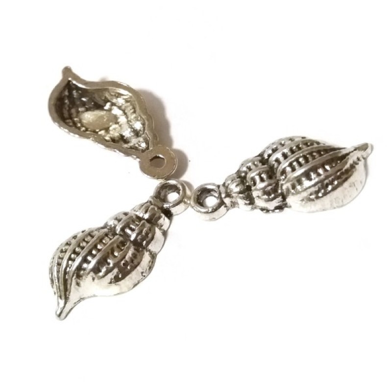 Vienpusējs metāla elements piekariņš gliemežnīcas formā. Antīka sudraba krāsā, izmērs 10x19mm. Cena par gab.