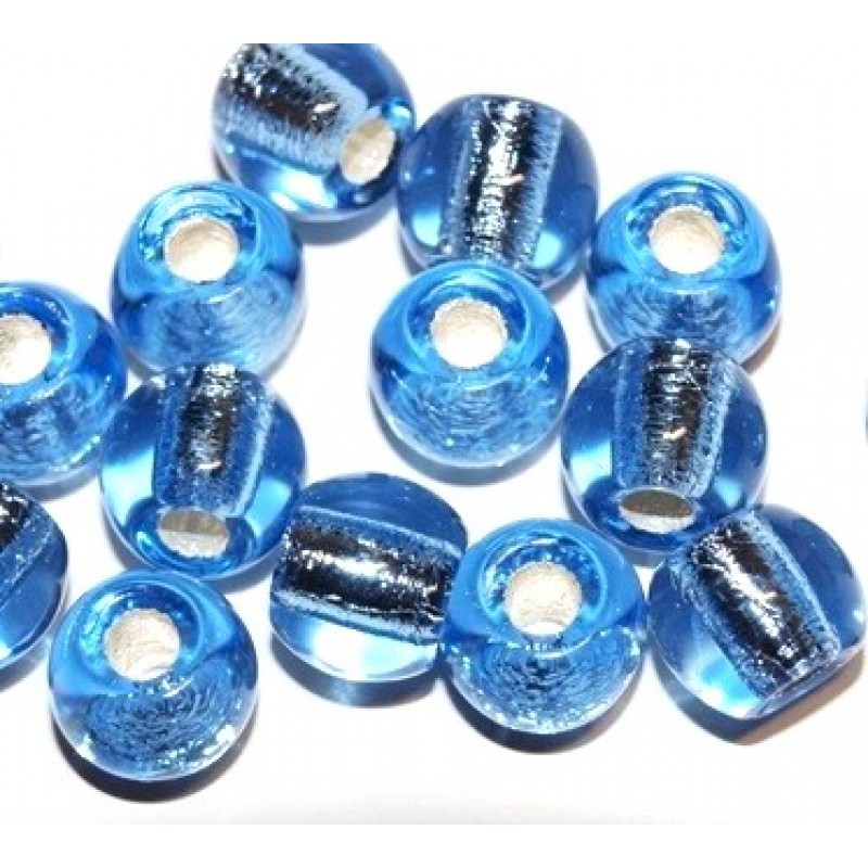 Stikla pērle ar follija vidu, diametrs 12mm. Ekstra liels caurums. Piemērotas gan 15mm, gan 85mm adītajām stieples lentām. Cena par gab.