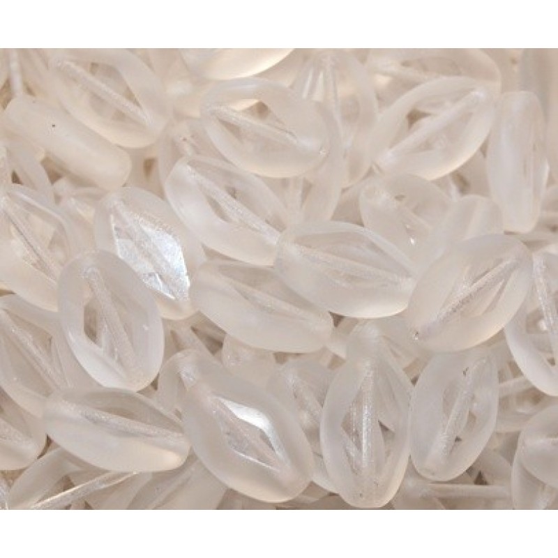 Matēta, caurspīdīga stikla pērle čūskas acs formā ar divām skaldītam virsmām. Izmērs 15x9mm, cena par gab.
