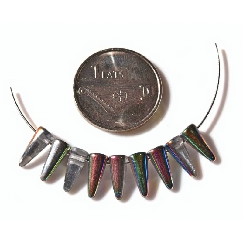 Konusa formas pērle, caurums platākajā galā, izmērs 4x10mm. Krāsa - crystal vitrail - caurspīdīga ar izteiktu varavīksnes krāsojumu no vienas puses.Cena par gab.