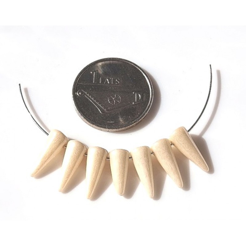 Konusa formas pērle, caurums platākajā galā, izmērs 5x13mm. Krāsa - bēšs ar spīdumu - necaurspīdīga. Cena par gab.