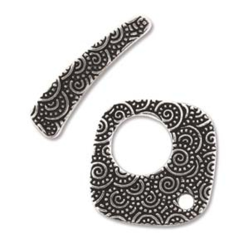 Kvadrātveida aizdare "Spirāles", antīks sudrabs (x1)