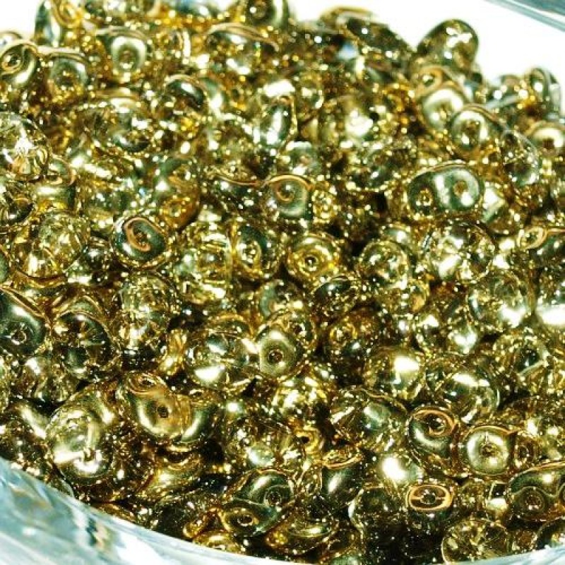 SuperDuo pērlītes bezkrāsainas ar zelta spīdumu no vienas puses, caurspīdīgas.
