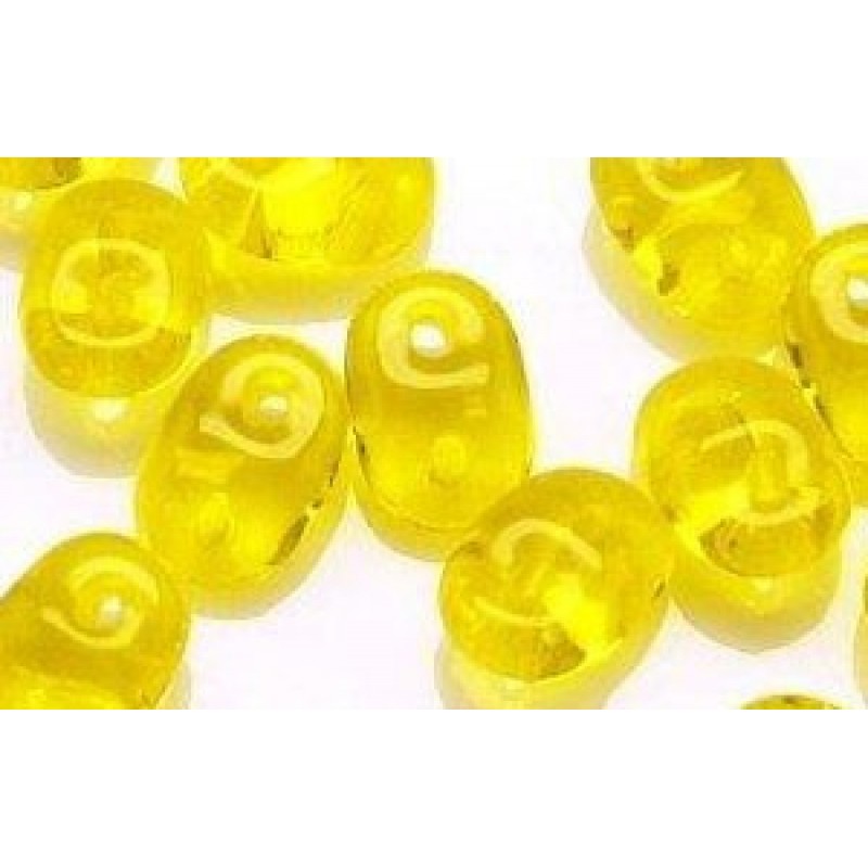 SuperDuo - divu caurumu pērles, precīzas, ideāli pieguļ viena otrai. Krāsa - gaišu narcišu dzeltens, caurspīdīga. Pērlīšu izmērs 2.5x5mm. Cena par 10g (aptuveni 130 gab).