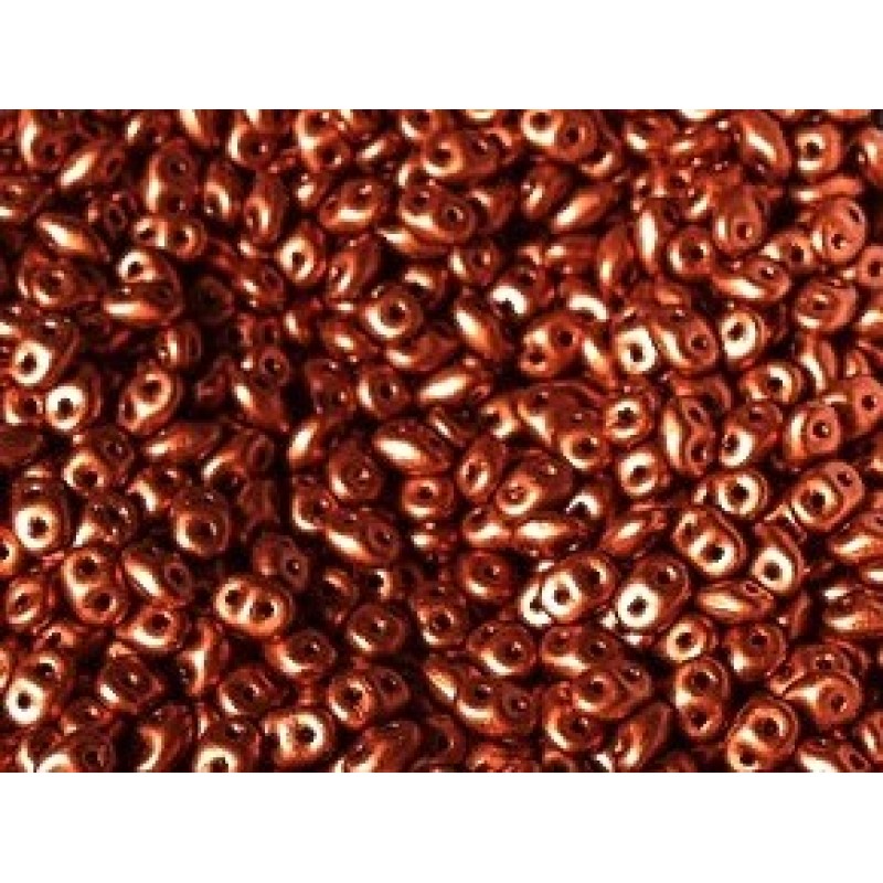 SuperDuo - divu caurumu pērles, precīzas, ideāli pieguļ viena otrai. Iepakojumā necaurspīdīgas, matētas pērlītes tumša vara krāsā. Pērlīšu izmērs 2.5x5mm. Cena par 10g (aptuveni 130 gab).