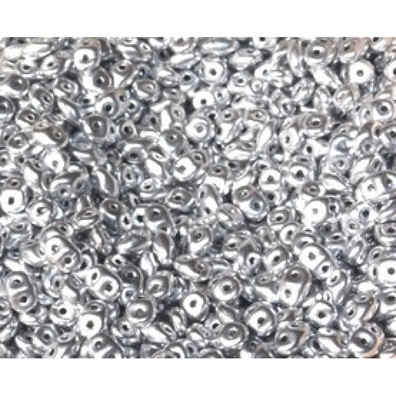 SuperDuo - divu caurumu pērles, precīzas, ideāli pieguļ viena otrai. Iepakojumā necaurspīdīgas, matētas pērlītes sudrabainā krāsā. Pērlīšu izmērs 2.5x5mm. Cena par 10g (aptuveni 130 gab).