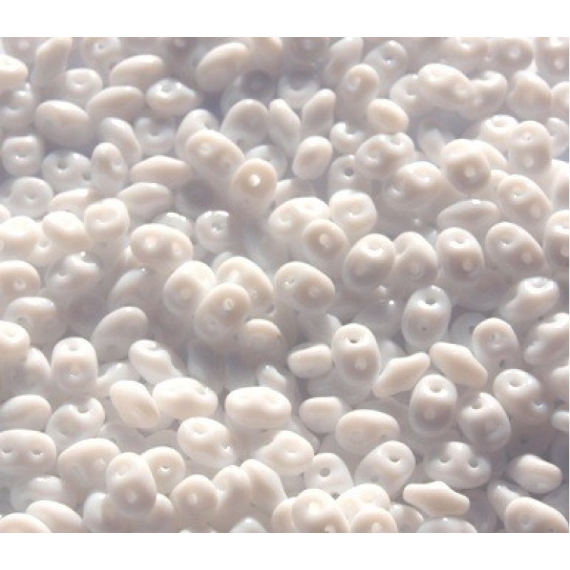 SuperDuo - divu caurumu pērles, precīzas, ideāli pieguļ viena otrai. Krāsa - balta, necaurspīdīga. Pērlīšu izmērs 2.5x5mm. Cena par 10g (aptuveni 130 gab).