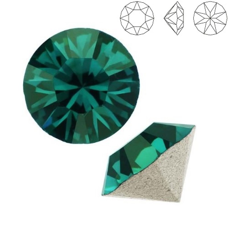Smaragdzaļas krāsas SWAROVSKI kristāls ar sudraba folija aizmuguri papildus mirdzumam.