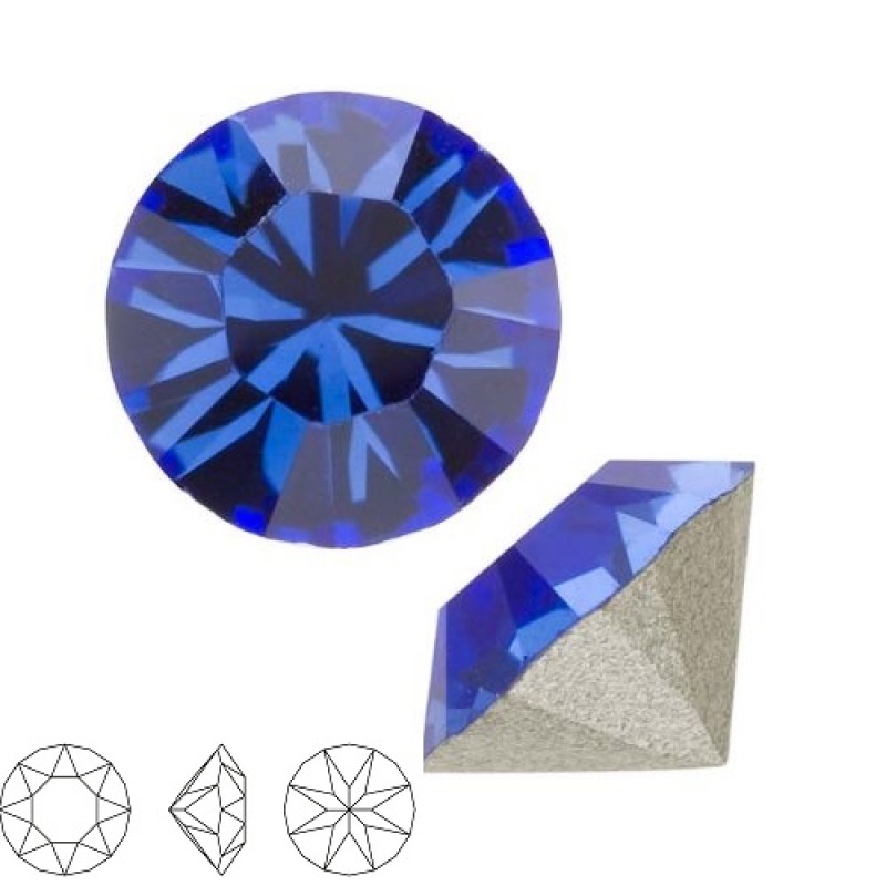 Safīrzilas krāsas SWAROVSKI kristāls ar sudraba folija aizmuguri papildus mirdzumam.