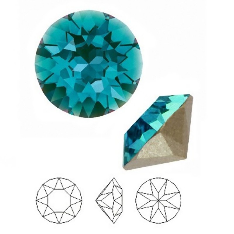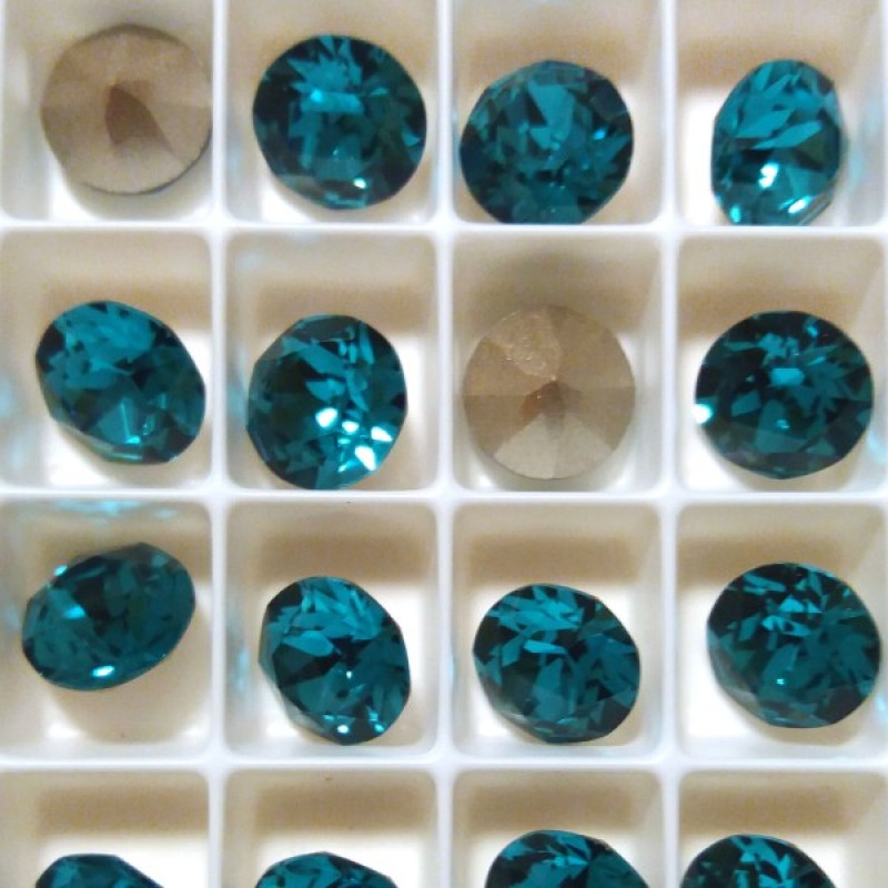 Zilganzaļas (teal) krāsas SWAROVSKI kristāls ar sudraba folija aizmuguri papildus mirdzumam.