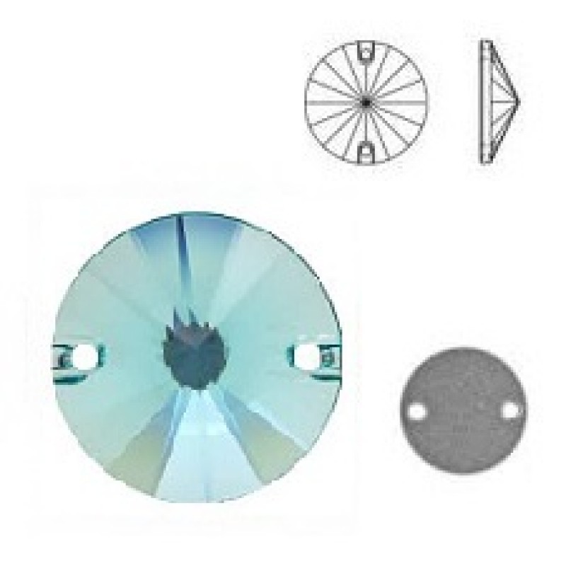 Piešujamais SWAROVSKI ELEMENTS rivoli kristāls gaiša tirkīza krāsā un spoguli aizmugurē papildus mirdzumam. Cena par gab.