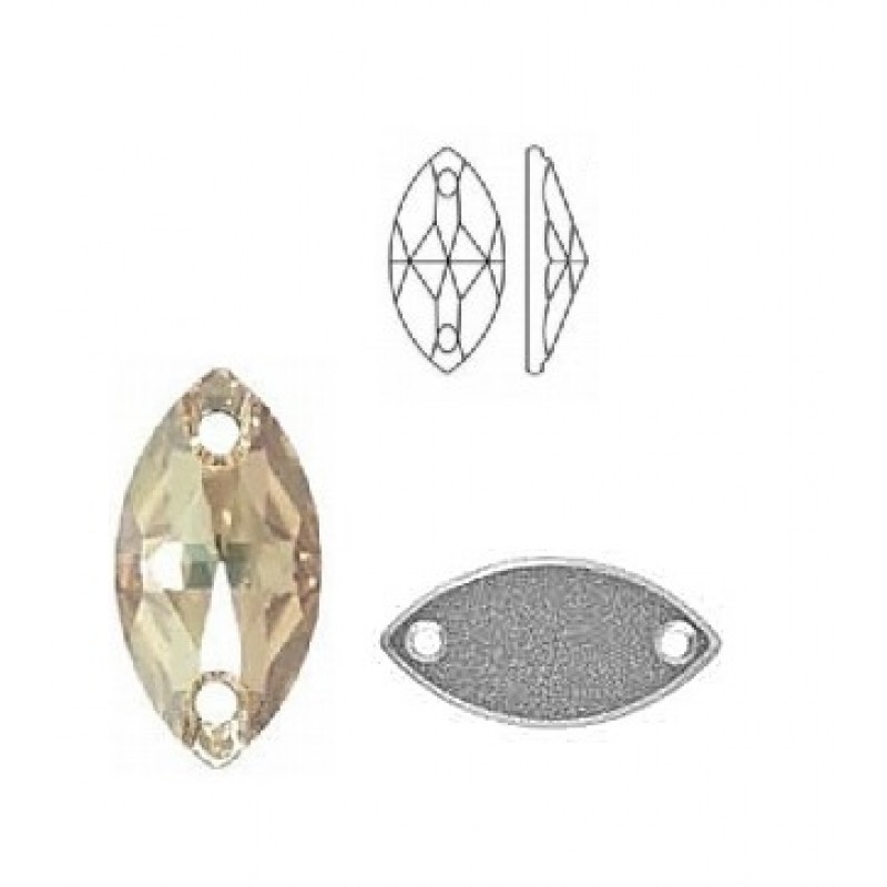 Piešujams acs formas SWAROVSKI ELEMENTS kristāls, divi caurumi, dabiskā krāsā ar zeltainu spīdumu no iekšpuses, no aizmugures spogulis papildus mirdzumam. Cena par gab.