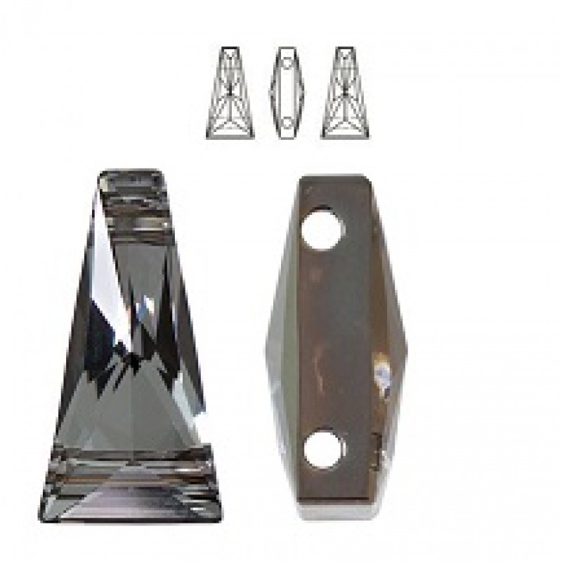 SWAROVSKI ELEMENTS kristāla pērle, kas vizuāli atgādina cirvīti. Divi caurumi. Pērles šaurais gals ir 3mm plats, platākais 9mm. Augstums 17mm. Krāsa - dabisks kristāls ar tumši pelēku spīdumu no iekšpuses. Aizmugurējā daļā līdzīgs hematītam. Cena par gab.