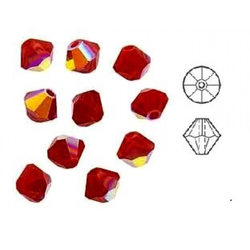 SWAROVSKI ELEMENTS bikonuss tumši sarkana koraļļa krāsā ar AB efektu no vienas puses. Cena par 10 kristāliem.